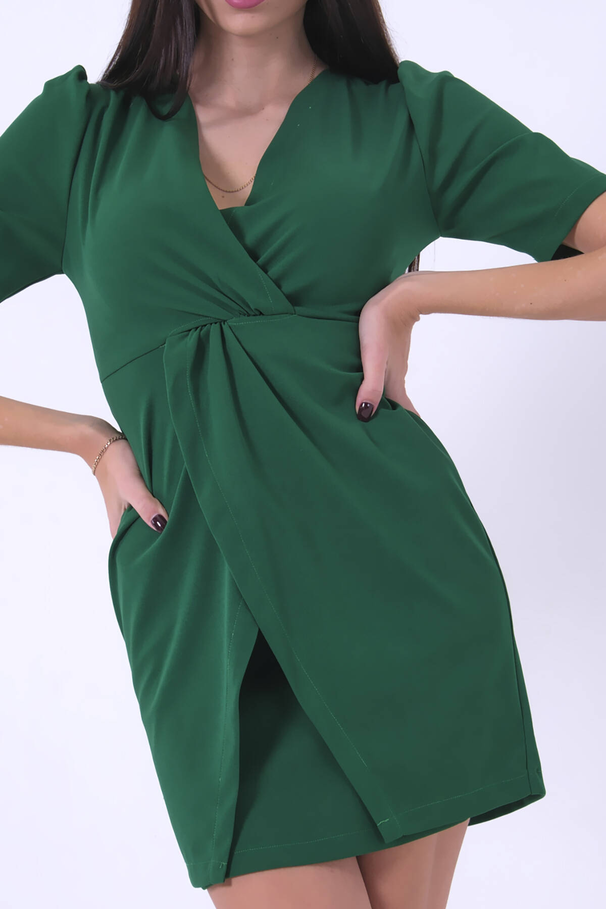 Zümrüt Kuvaze Yaka Önü Çapraz Detaylı Elbise 0104023.123