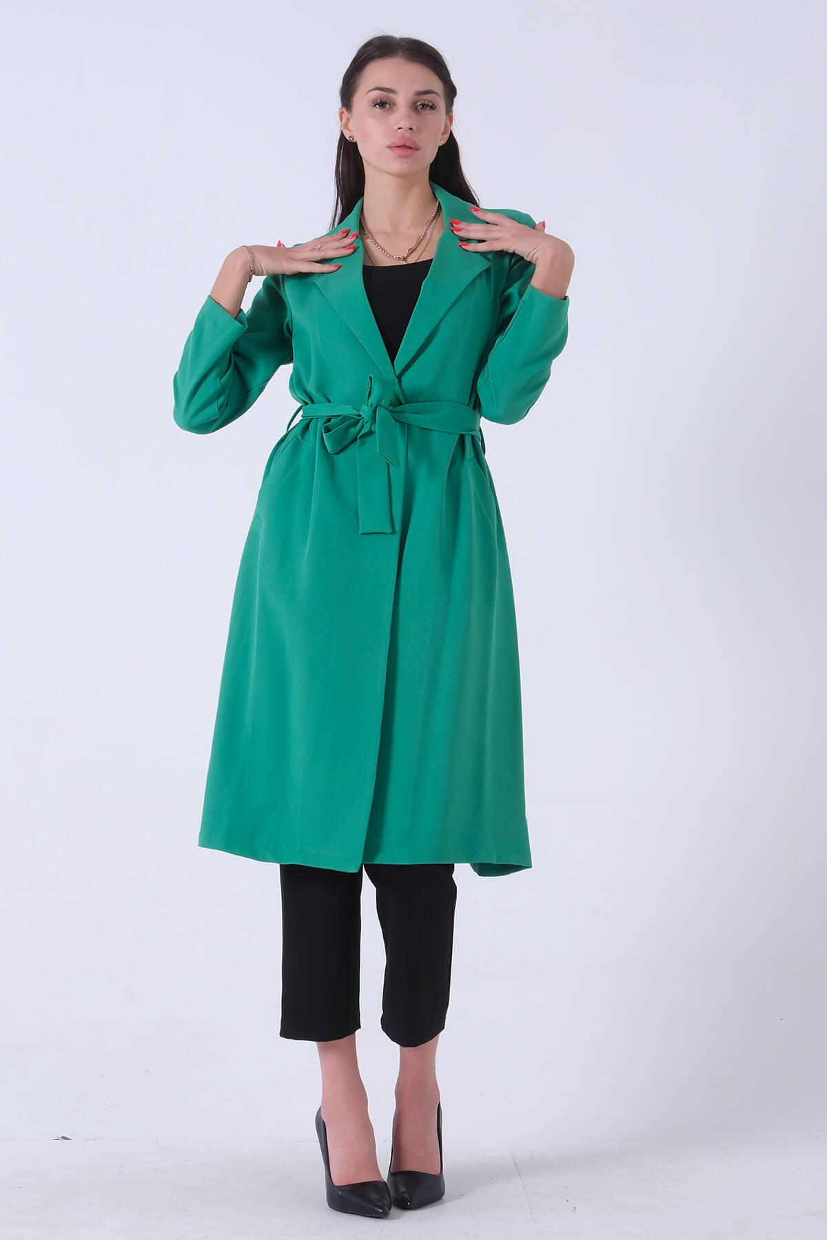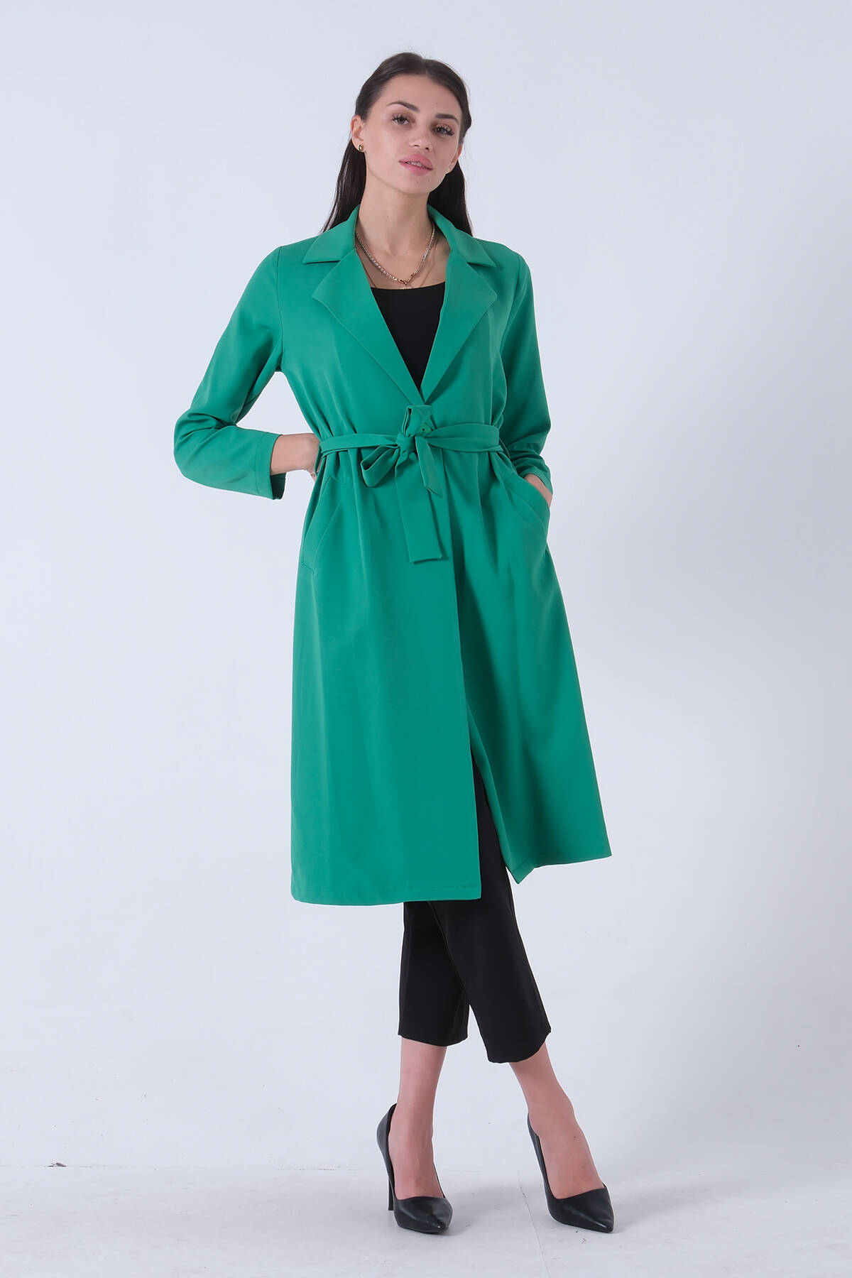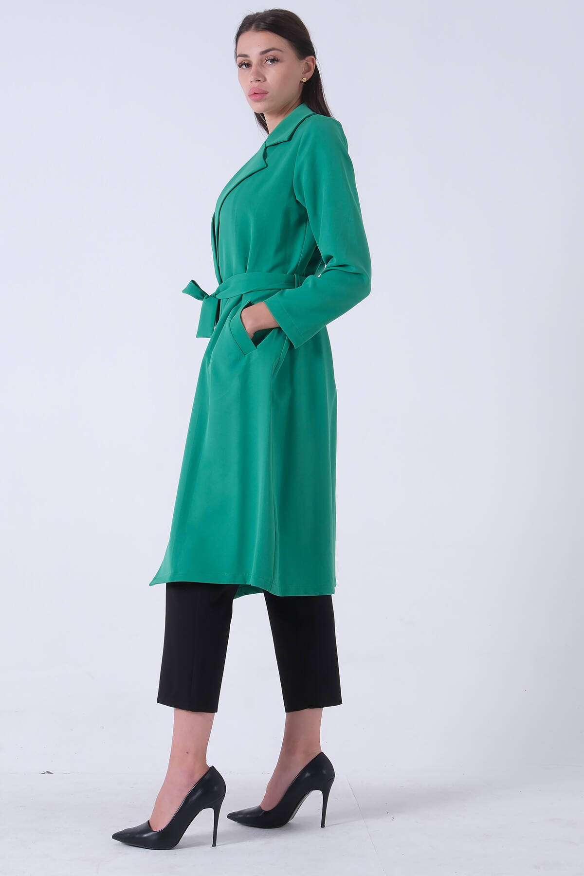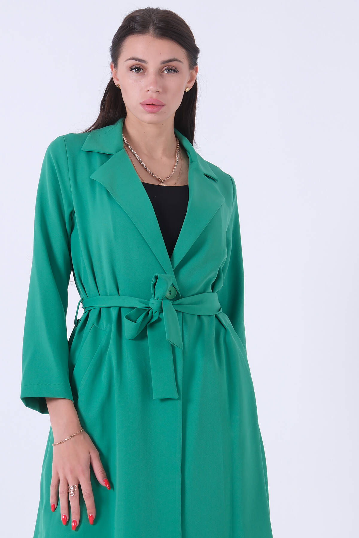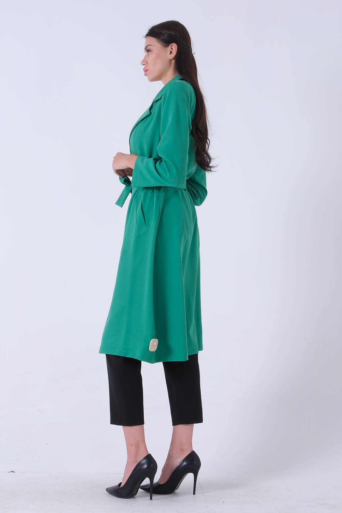 Zümrüt Önü Tek Düğmeli Belden Bağlamalı Kap 0809022.123