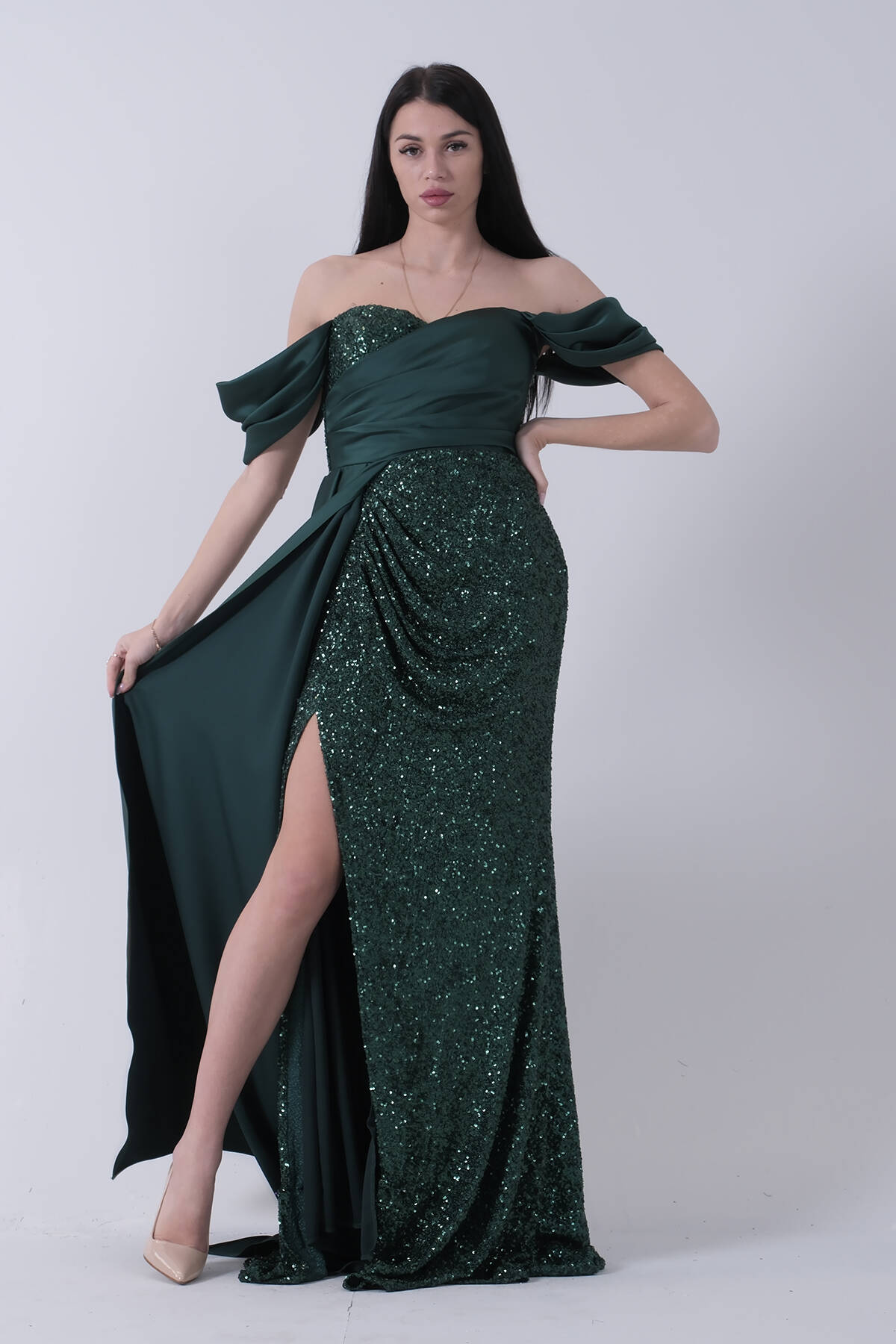 Zümrüt Pul Payet Detaylı Yırtmaçlı Abiye 9705321.123