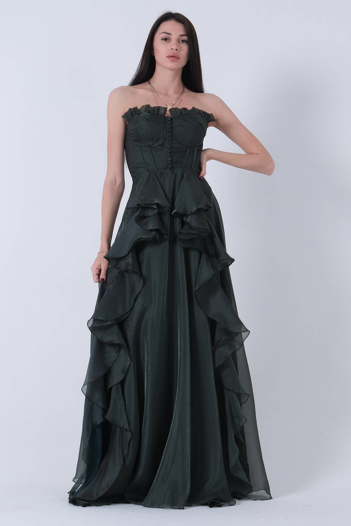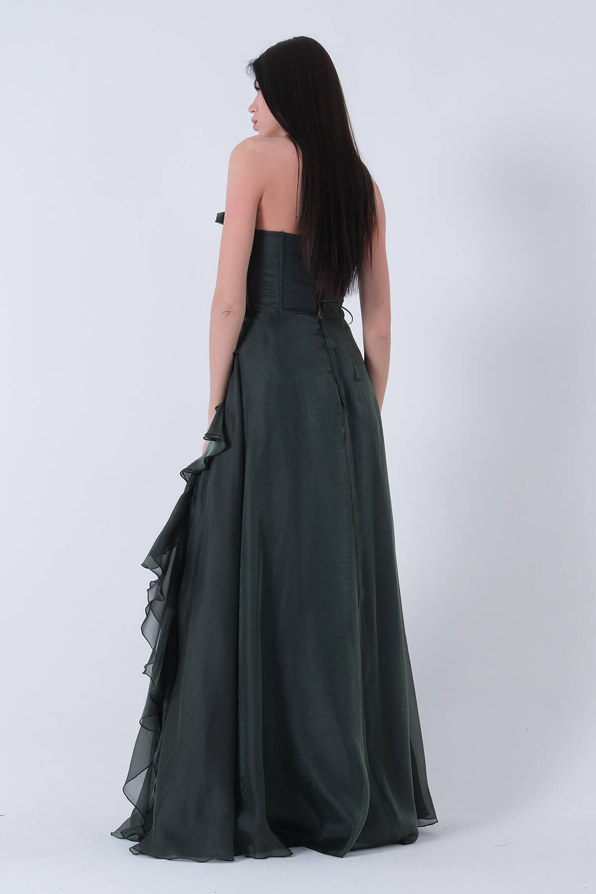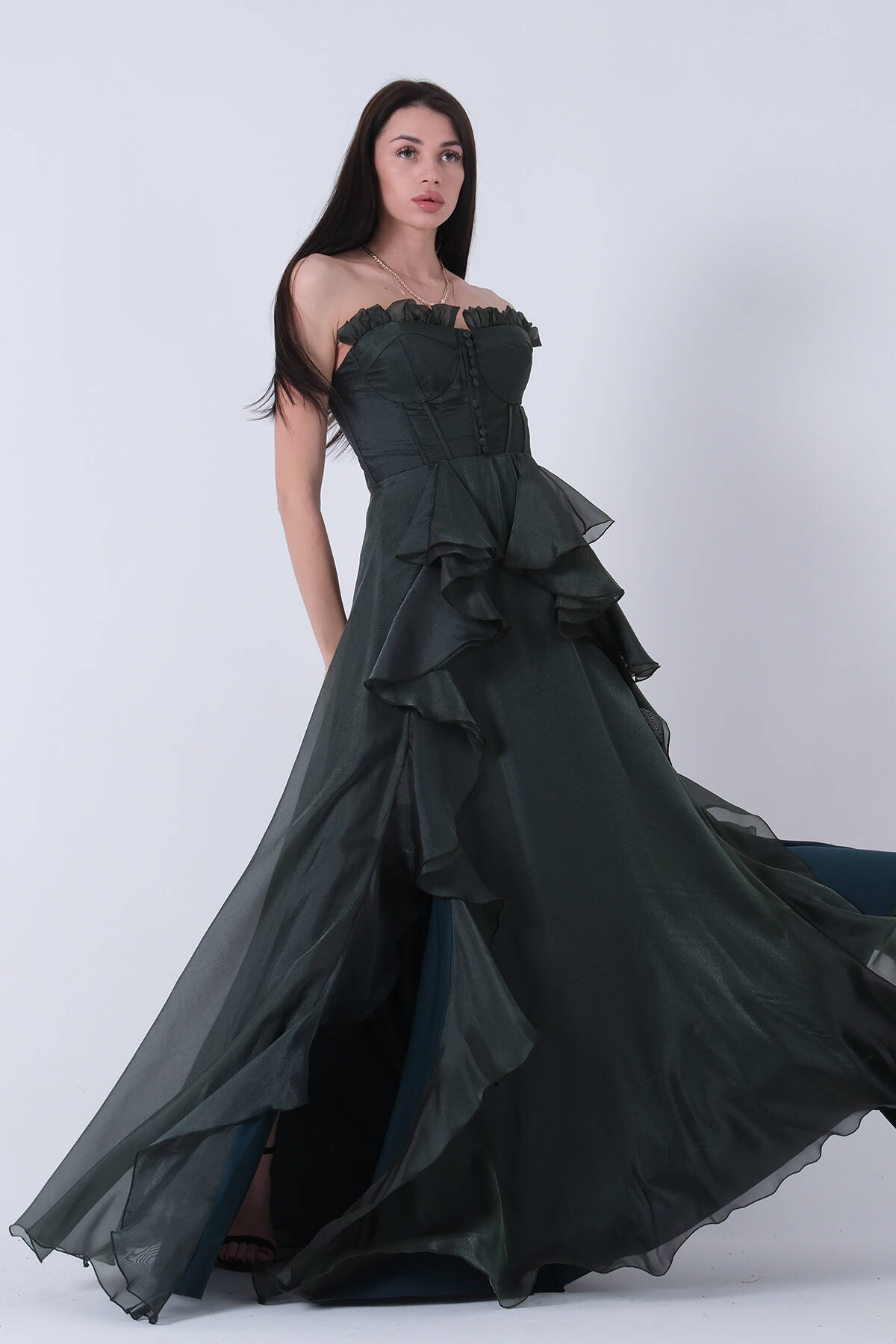 Zümrüt Straplez Yaka Yırtmaçlı Eteği Fırfırlı Abiye 9705234.123