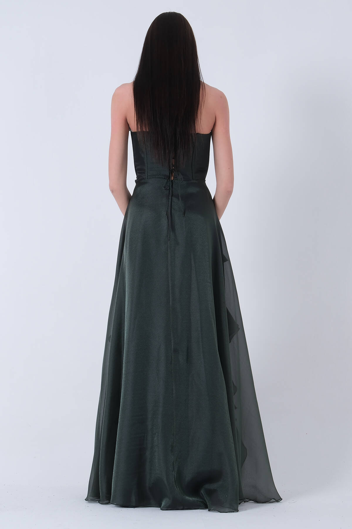 Haki Üzeri Taş İşleme Detaylı Kuşak Bağlama Detaylı Straplez Abiye 08011801.23