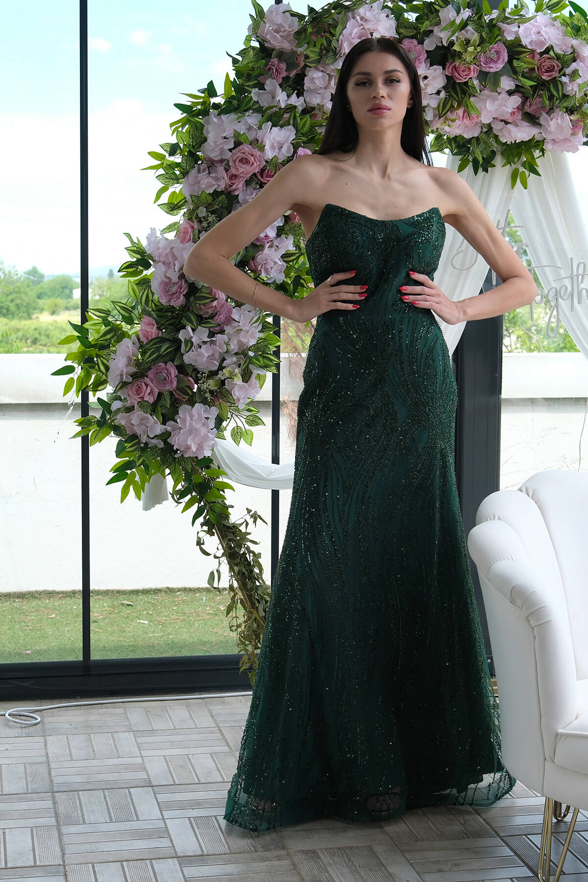 Zümrüt Taş İşlemeli Uzun Balık Abiye 0801056.123