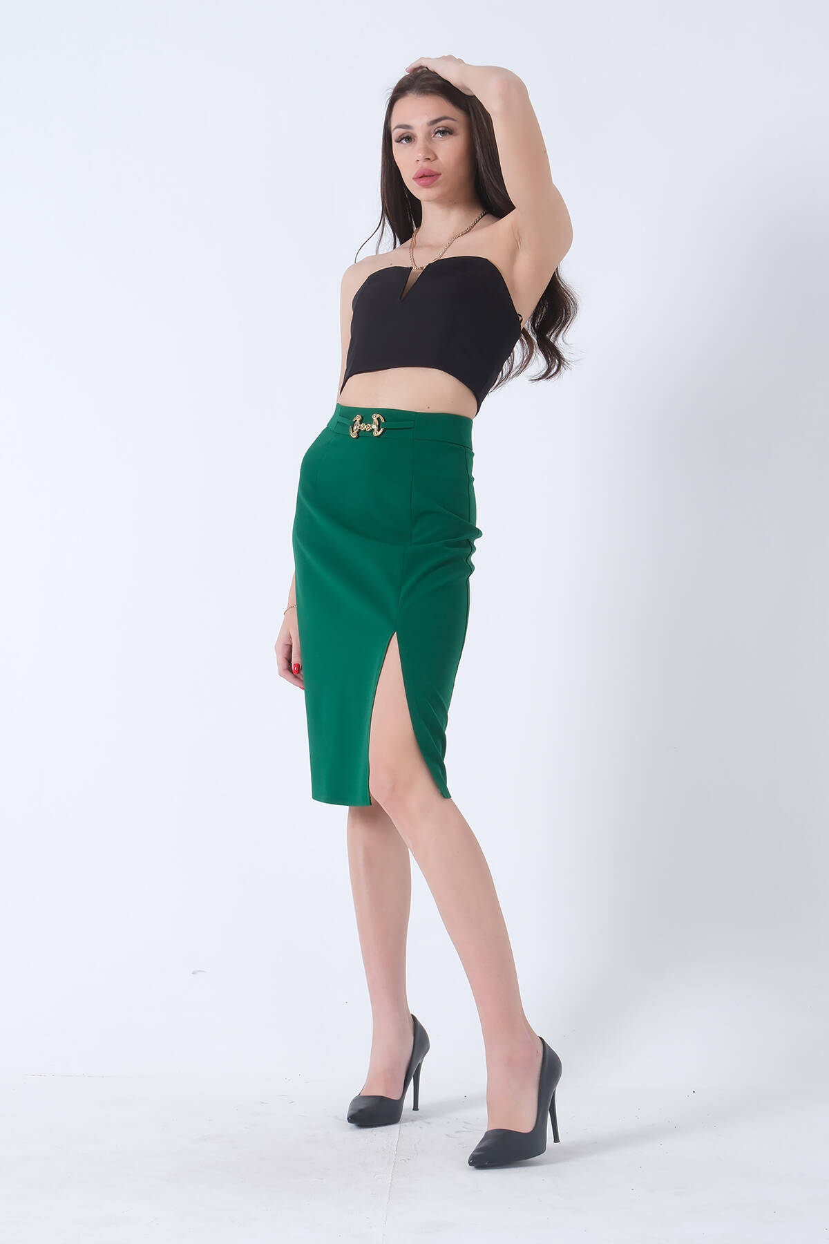 Kısa Yandan Yırtmaçlı Kemer Toka Detaylı Kalem Etek
